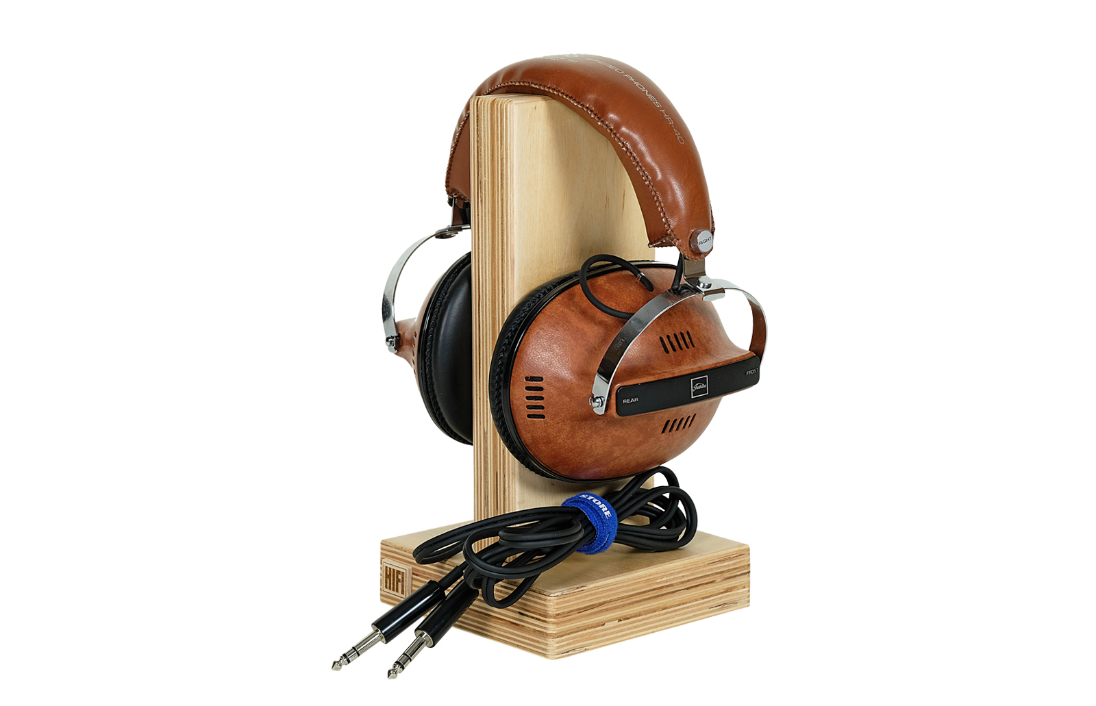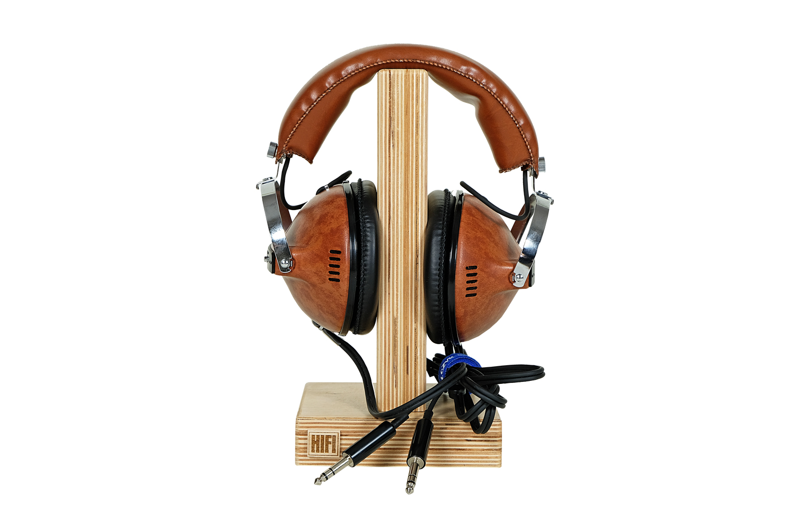 Specjalnie zaprojektowane i ręcznie wykonane solidne standy na słuchawki w zestawie. Materiał to sklejka polakierowana przy użyciu samochodowej techniki lakierniczej “na mokro”, co nadaje standom piękny wygląd i sprawia, że są bardzo miłe w dotyku. Podstawa została podklejona filcem, aby zabezpieczyć meble przed zarysowaniem.