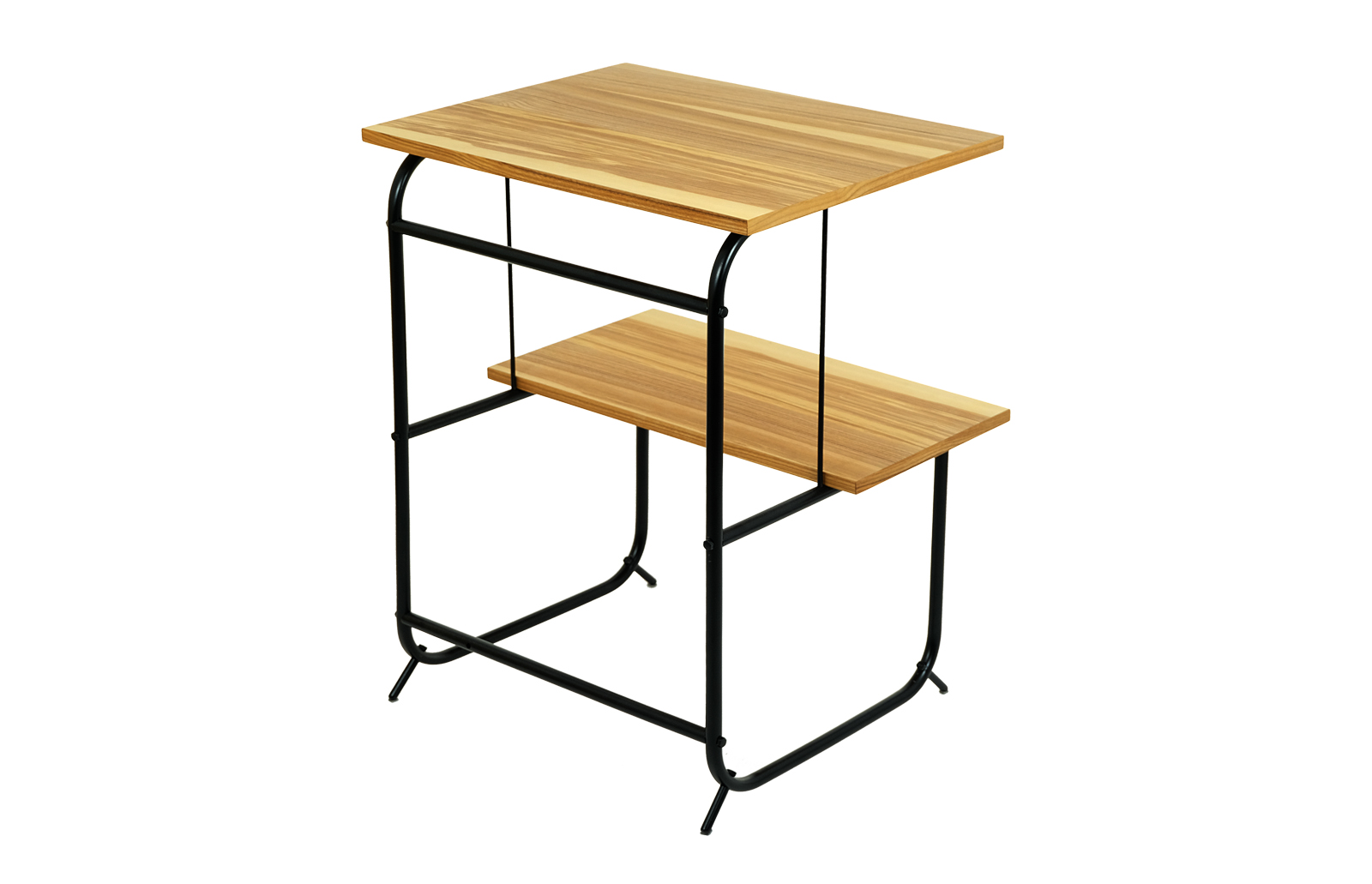 Stolik  został całkowicie oczyszczony ze starych powłok lakierniczych. Oklejony obłogiem drewna Jesionowego.  Zabezpieczony olejem na bazie naturalnych olei chińskich, przyjaznym dla środowiska. Blaty woskowane, odporne na działanie wody. Elementy metalowe do montażu mebla zostały wypiaskowane i pomalowane farbą proszkową.