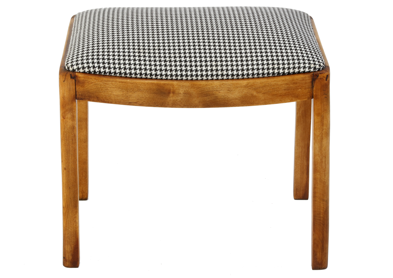 Zrobiony z drewna klonowego. Taboret został całkowicie rozebrany, drewno oczyszczone ze starych powłok, ponownie sklejony, zabezpieczony olejem na bazie naturalnych olei chińskich, przyjaznym dla środowiska. Nowa tapicerka, wymieniona gąbka, pasy, fizelina, ponowne wiązanie sprężyn.  Dobrej jakości tkanina, odporność na ścieranie 20 000 suwów. Bardzo miękki i  wygodny.