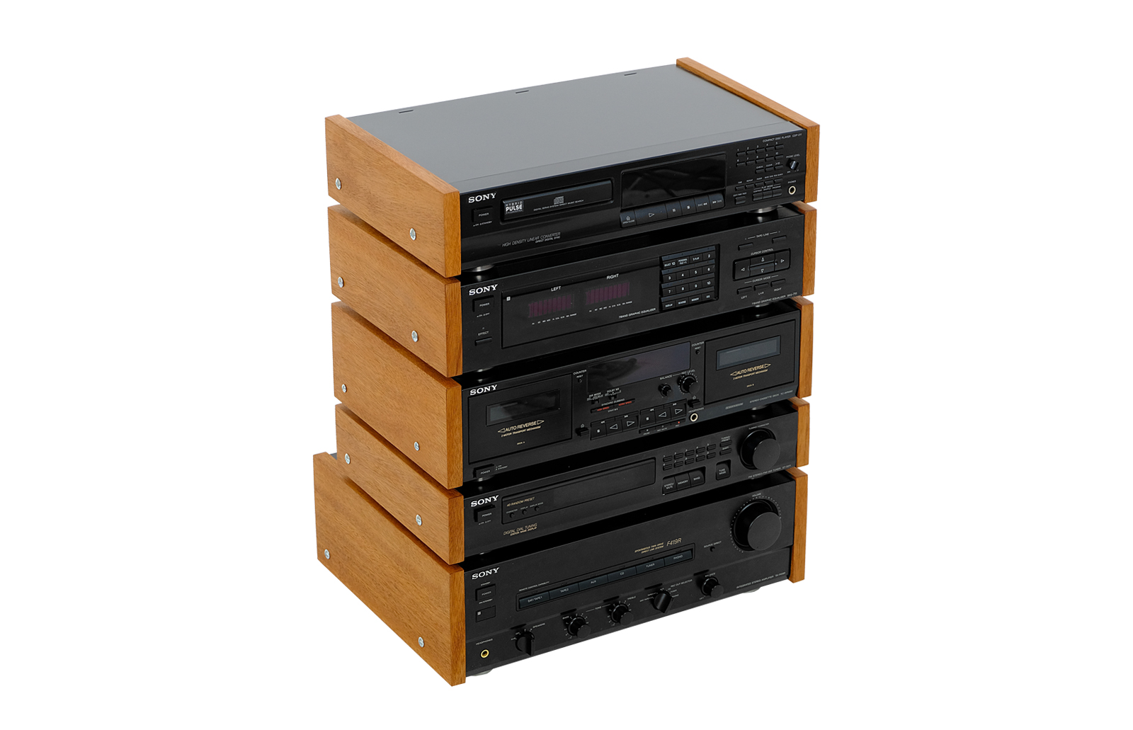 Prezentowana wieża z pierwszej połowy lat 90tych składająca się ze wzmacniacza TA-F419R, tunera ST-S211, magnetofonu TC-WR690, korektora graficznego SEQ-711 oraz odtwarzacza CDP-211 reklamowana była przez Sony pod hasłem “The World of Entertainment” (z ang. – Świat rozrywki). Ponadto producent polecał ten zestaw do słuchania takich zespołów jak Spin Doctors czy Culture Beat. Wieża to kwintesencja elektronicznego brzmienia lat 90 charakteryzująca się czystymi górami i dynamicznymi dołami.