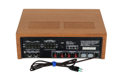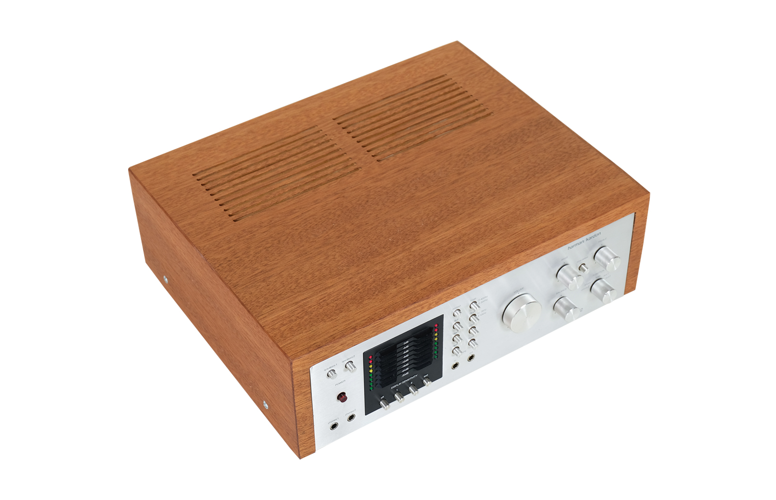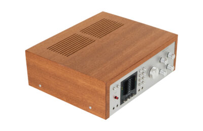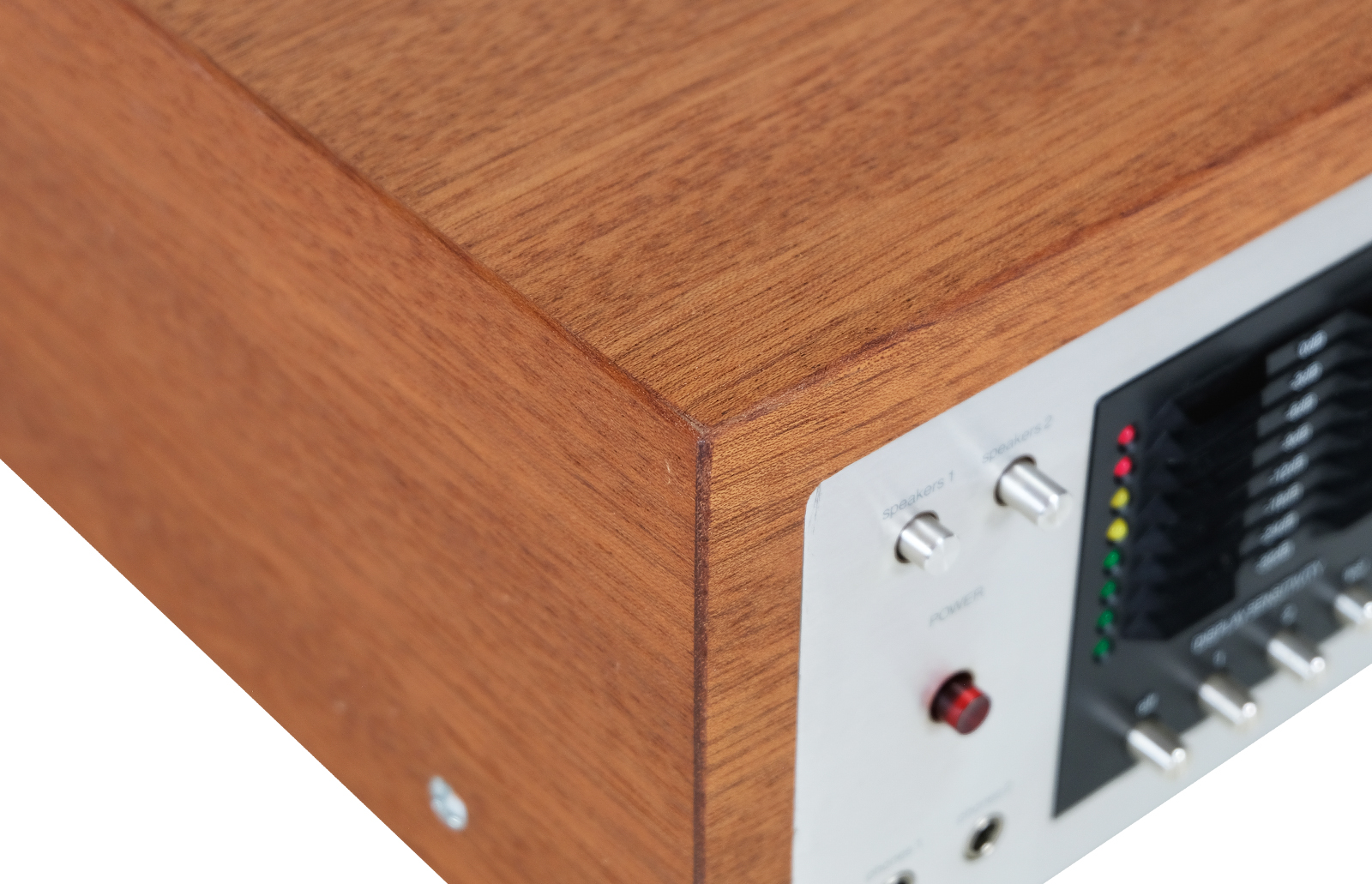 Prezentowany model został wyposażony w nową powiększoną obudowę z drewna meranti, która podkreśla jego piękny charakterystyczny dla lat 70tych dizajn. Wykończenie drewna to olej chiński produkowany na bazie naturalnych olei oraz naturalny wosk pszczeli na bazie terpentyny. Potencjometry w idealnym stanie. Panel przedni wykonany  ze szczotkowanego aluminium. Urządzenie po całkowitym przeglądzie i serwisie, zostało wyposażone w nowe aluminiowe nóżki.