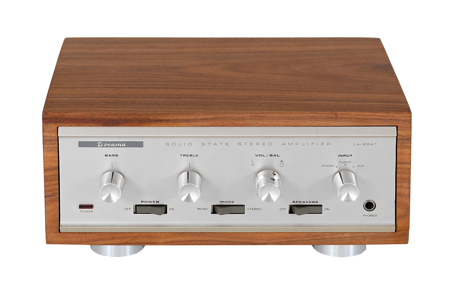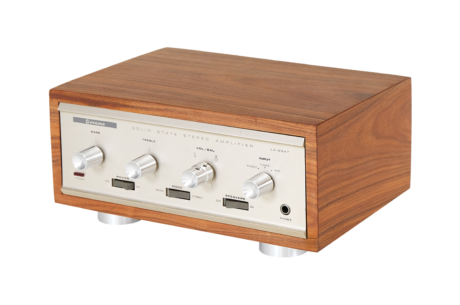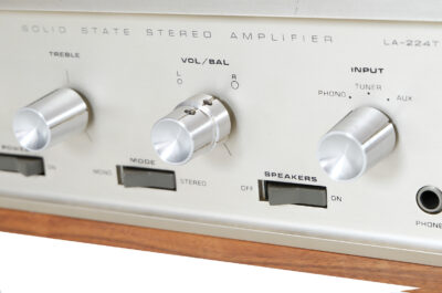 Lafayette Bocama LA224 T to wysokiej jakości wzmacniacz tranzystorowy z drugiej połowy lat 60tych. Zarówno pod względem klasycznego, charakterystycznego dla swojej epoki dizajnu, jak i pięknego, ciepłego oraz soczystego brzmienia, model ten bardzo przypomina swojego starszego o rok brata czyli wzmacniacz lampowy Bocama LA224 B. Warto dodać, że urządzenia z linii LA224 oprócz swojej “urody” wyróżniają się także stabilną i mocną konstrukcją.