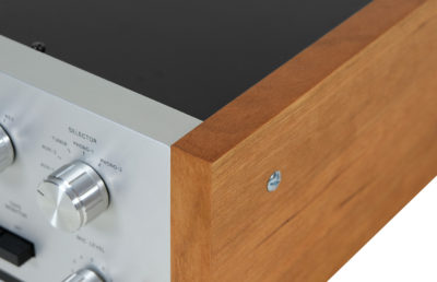 Obudowa została poddana całkowitej rewitalizacji. Górna pokrywa została oczyszczona i pomalowana przy użyciu samochodowej techniki lakierniczej “na mokro”. Użyto lakieru w kolorze czarnym i zabezpieczono go bezbarwnym lakierem matowym. Nowe boczne deski z drewna czereśni amerykańskiej sprawiają, że odtwarzacz ma elegancki wygląd.