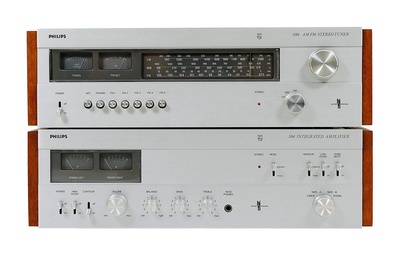 Wzmacniacz Philips 594. Tuner Philips 694. Classic Vintage. Po całkowitej rewitalizacji.