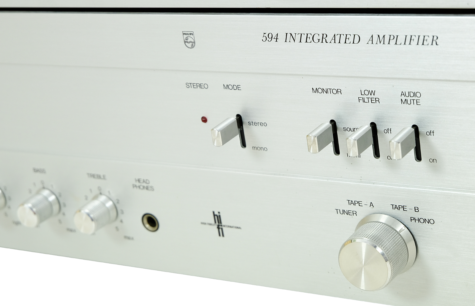 Model 594 Integrated Amplifier to wzmacniacz charakteryzujący się pięknym, ciepłym i miękkim brzmieniem oraz klasycznym i eleganckim dizajnem. Na uwagę zasługują przede wszystkim minimalistyczny w swojej formie panel przedni wykonany ze szczotkowanego aluminium i stereofoniczne, wychyłowe wskaźniki mocy, które po rewitalizacji zyskały piękne zielone podświetlenie. Model 594 był rekomendowany przez inżynierów Philipsa jako część wysokiej jakości wieży Hifi 458, w której skład wchodziły również gramofon AF 777, tuner 694 T i magnetofon kasetowy N 2544.
